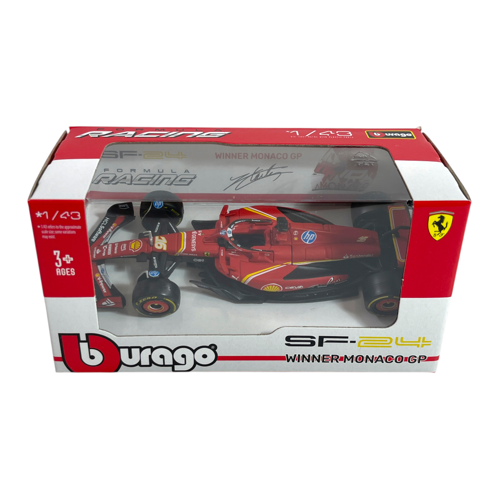 F1 model BBurago Race&Play 1/43 Ferrari SF-24 Winner Monaco GP 2024 #16 C. Leclerc