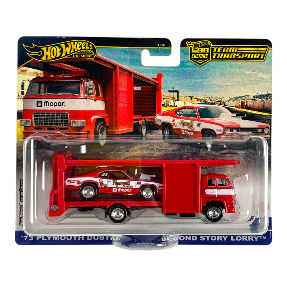 Hotwheels Team Transport Model Set 1/64 1973 Plymouth Duster, Second Story Lorry Red/White