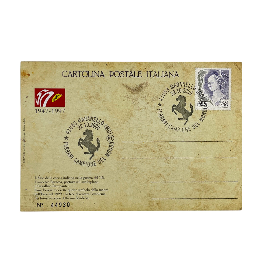 Italian Ferrari Cavallino Rampante 50th Anniversary Postcard 1947-1997